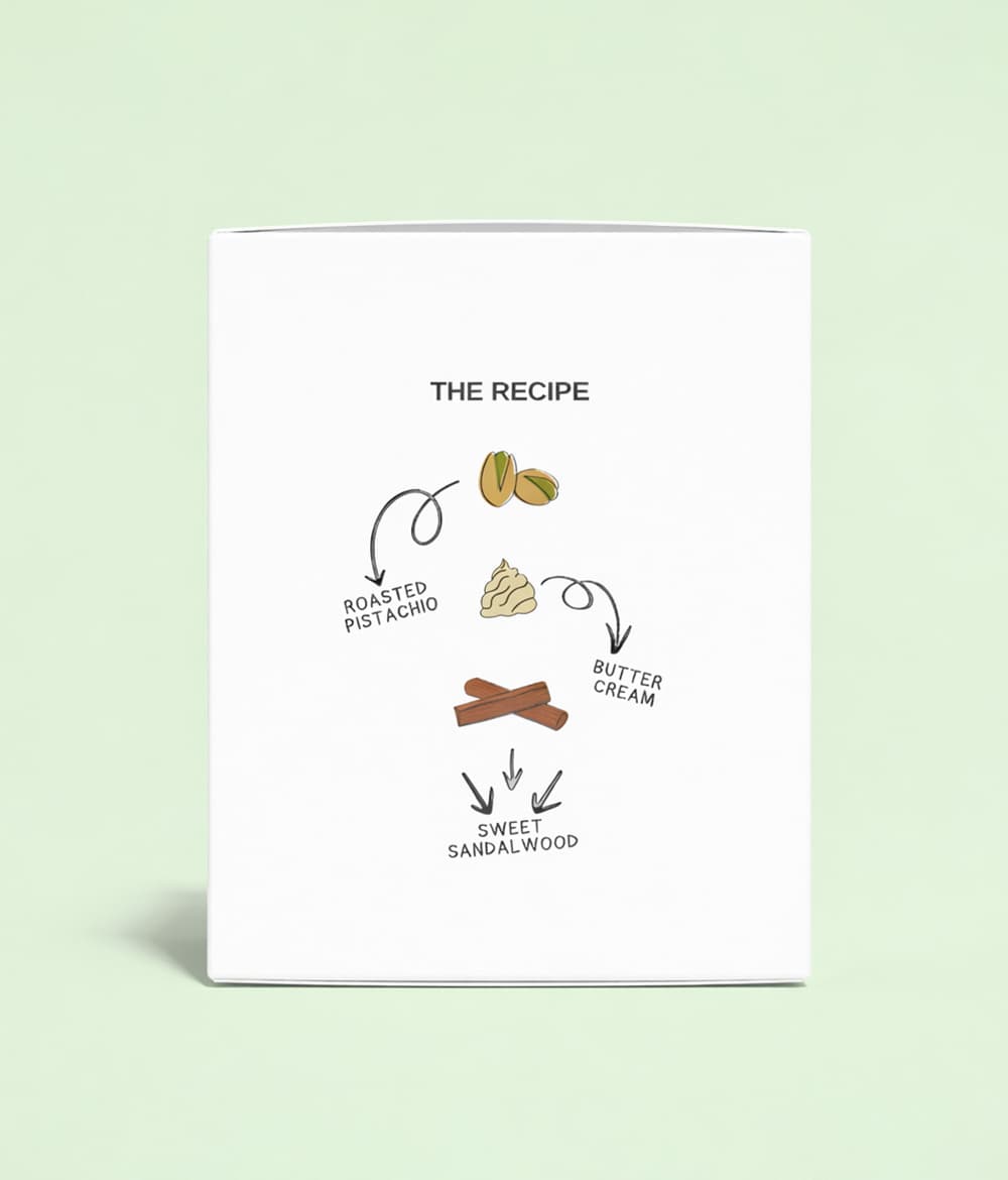 Top Notes: Pistachio Gelato, Bergamot, Hazelnut, Sweet Rum, Cardamom